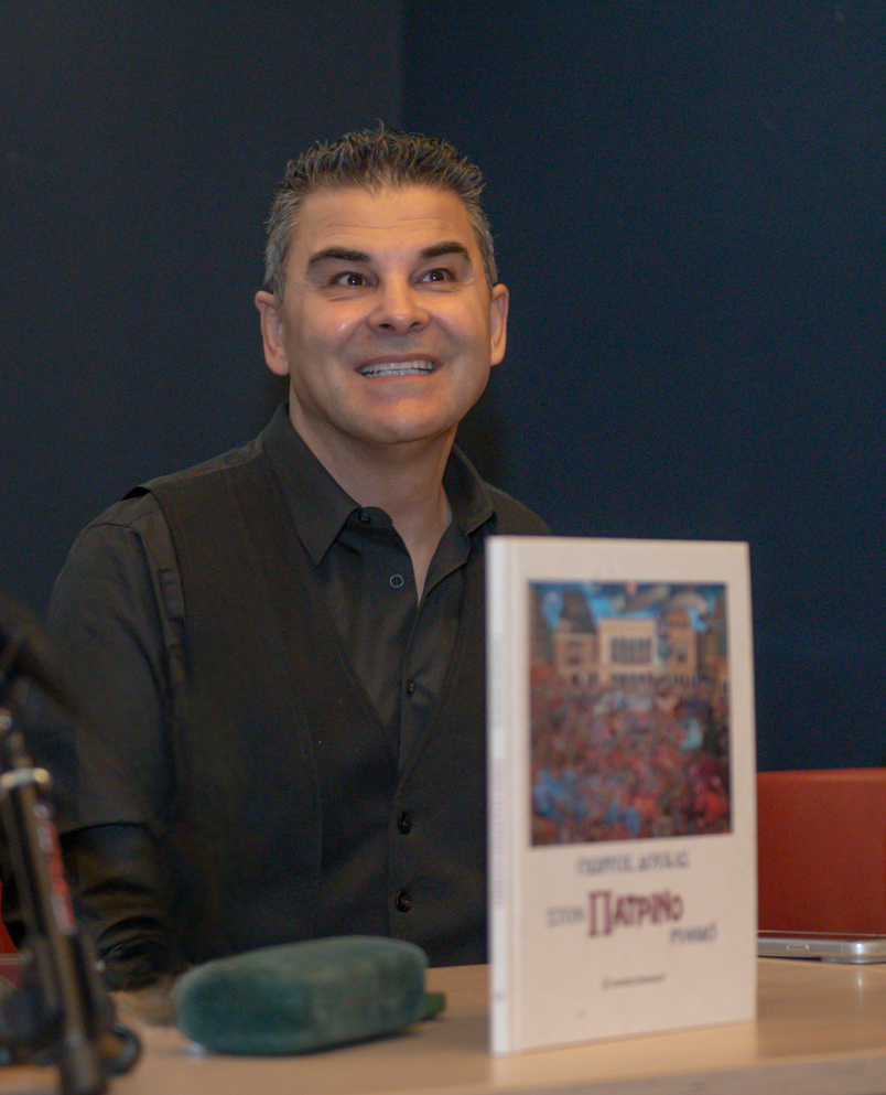 George Doukas was born in August 1974 in Larnaca amid the Turkish invasion of Cyprus. He relocated to Athens at the age of 18 and, propelled by his musical studies, immediately embarked on a professional singing career, releasing five solo albums in the music industry by 2008, which garnered significant acclaim. From a young age, he began composing short prose and stories, later delving into the realm of theatre, penning his inaugural musical theatre piece, "Triplo-Penies: Rehearsal for Murder," which premiered in 2015, marking his foray into the theatrical world. This was followed by his children’s play, "The Adventures of Mini-Miou," in 2016. Since then, he has translated into Greek internationally renowned children’s works, including "The Smurfs Save Spring" and shortly after, "WINX: The Party of Light." In 2020. In collaboration with the Ministry of Education and the Ministry of Environment & Energy, he authored the children's book "A Recycling Adventure," focusing on circular economy themes for elementary schools. Concurrently, he has written several episodes for Greek television. His debut novel is entitled "With the Strange Name Korama."